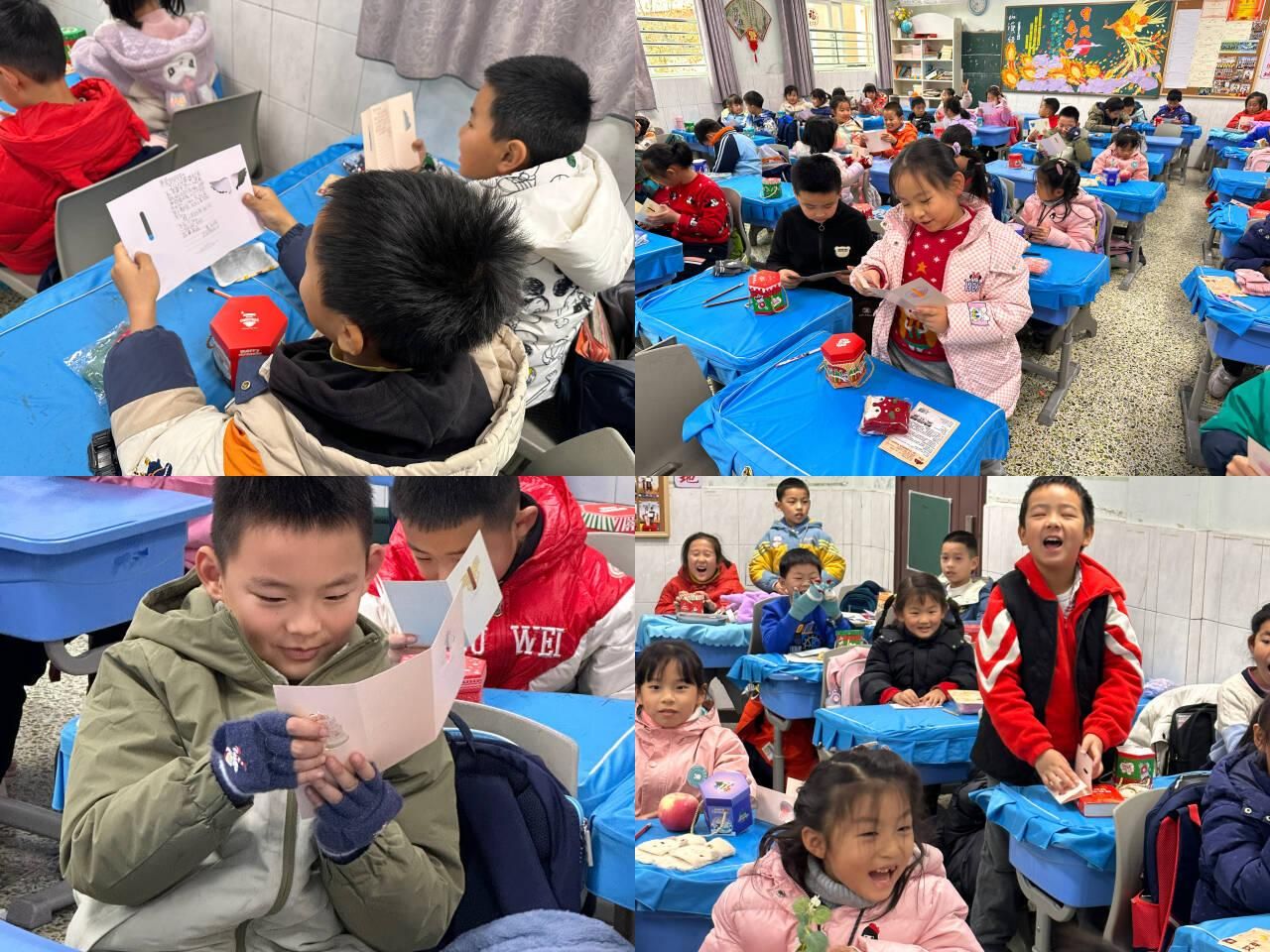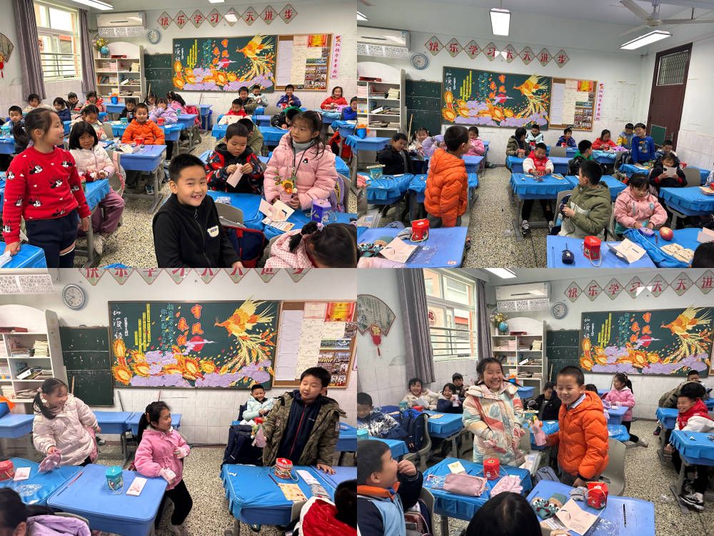 “送祝福”时刻,祝福纷飞,情谊流淌。同学们事先写好贺卡,再由其他同学随机抽出。抽到贺卡的同学念出祝词,真挚的话语在教室里回荡,编织成一张温暖的情谊之网,将大家的心紧紧相连。那些未曾言说的心意,借由这方寸贺卡,送达彼此心间,让友情在祝福声中升温。