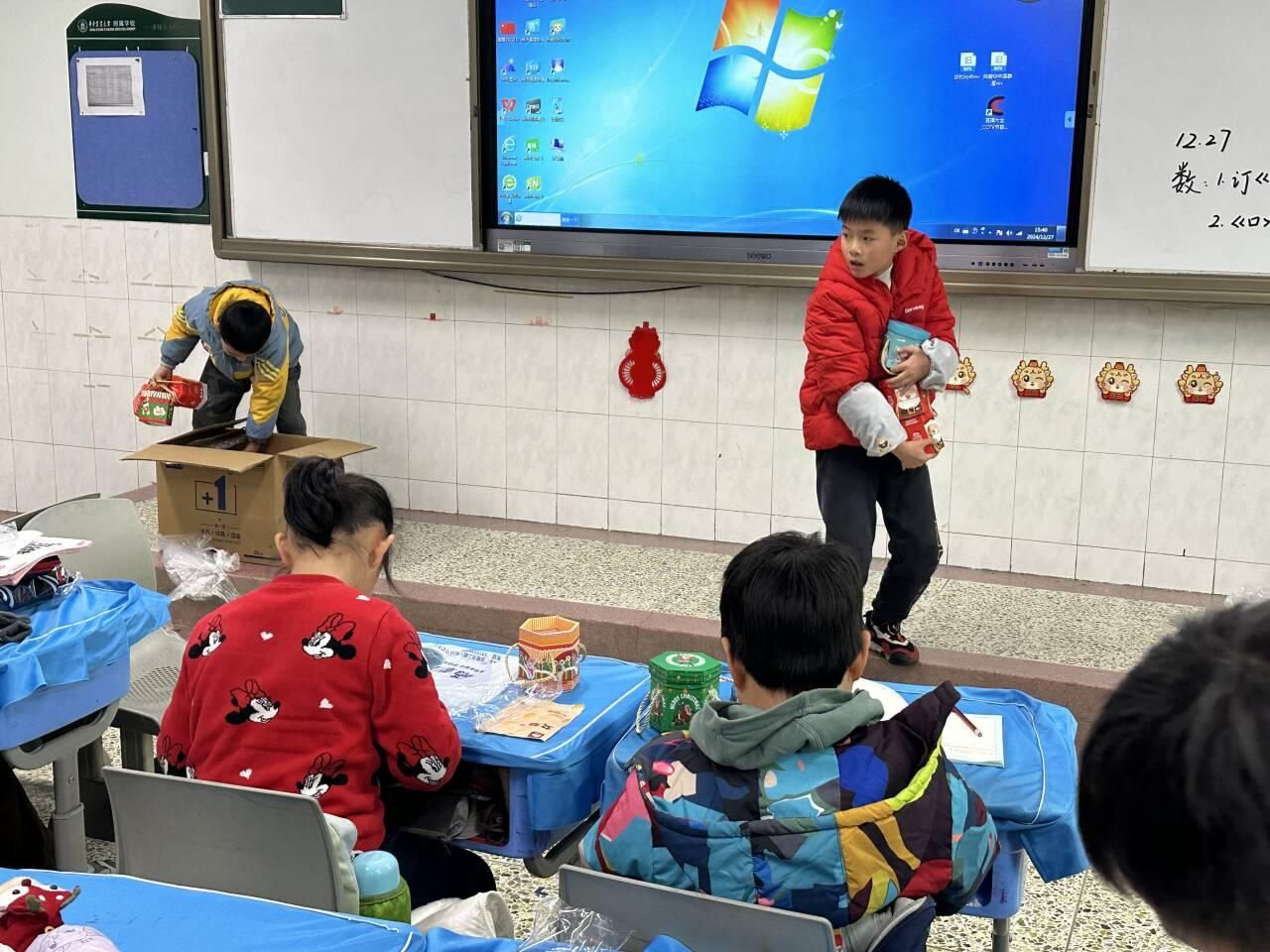 甲辰岁末,乙巳即来。12月27日下午,在一片欢声笑语中,201 班“四送庆元旦”活动正有序进行着。本次活动以“庆祝元旦”为契机,班级师生辞旧迎新,共同告别2024年。活动共分为四个环节:送温暖、送平安、送祝福、送希望,在冬日给同学们送去温情与幸福。