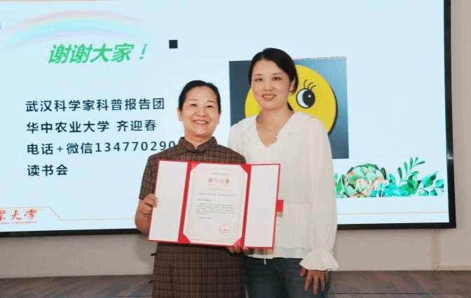 讲座末尾,华中农业大学附属学校为齐迎春老师颁发了荣誉证书。未来,华中农业大学附属学校将继续开展形式多样的心理健康教育活动,助力学生身心全面健康发展。