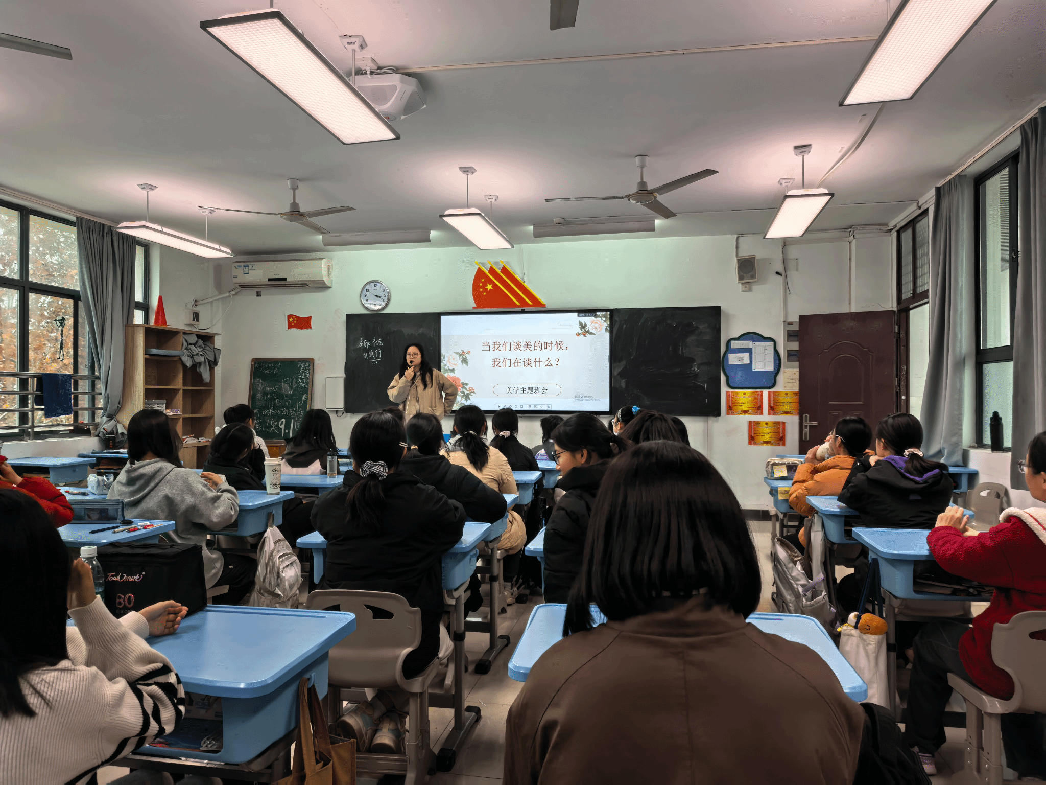 冬意初临,狮山校园却涌动着思想的暖流。为深入贯彻立德树人根本任务,推动思政教育与美育有机融合,引导青少年树立正确审美观, 2025年12月4日,华中农业大学附属学校八年级女生齐聚一堂,由道德与法治教师陈寒蔚主讲,开展了一场别开生面的“谈美”主题大思政课。课程以“美的起源与真义”为主线,从东西方美学的历史长河溯源,直面当下网络语境中对“美”的片面化认知,引导学生树立健康、多元、向上的审美观。