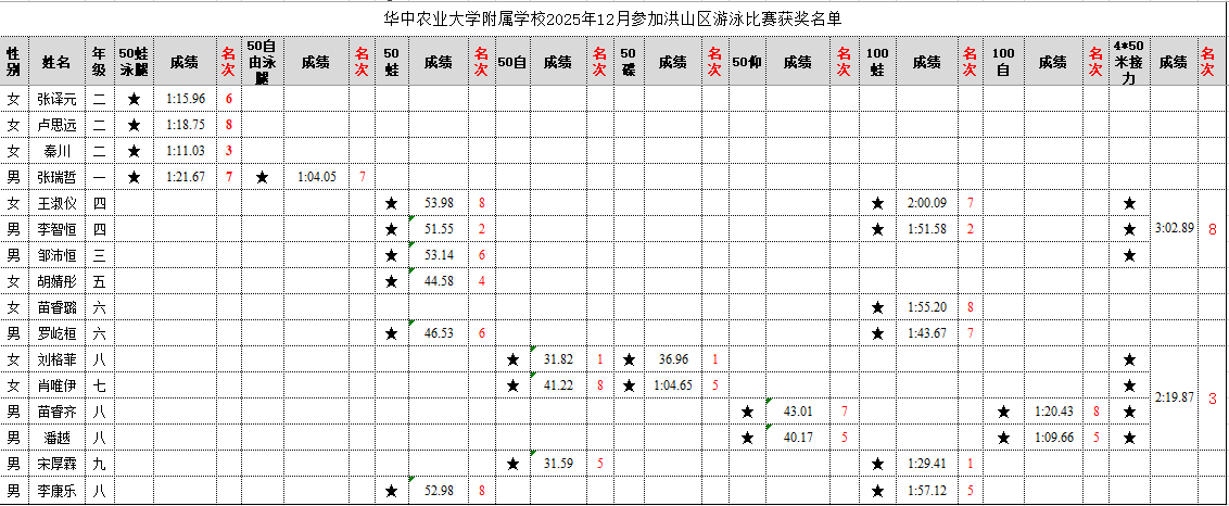 2025年12月7日,洪山区中小学生游泳比赛在文体中心热血开赛。全区的游泳小将齐聚泳池,以水为媒,展开了一场速度与耐力的巅峰对决。