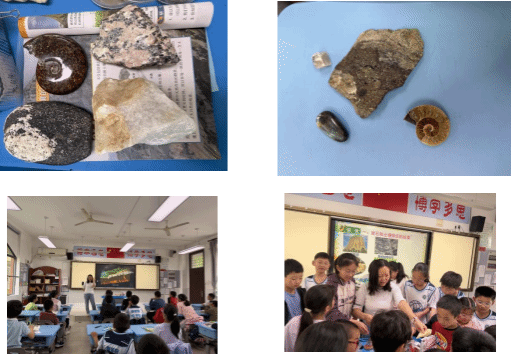 岩石知识讲解完毕后,进一步拓展了地球科学相关知识点,向同学们普及了月球存在岩石的相关常识,详细阐释了美国魔鬼塔的形成过程,同时深入讲解了菊石化石的形成机制及其在地质年代研究中的重要科学价值,有效拓宽了同学们的学科视野。