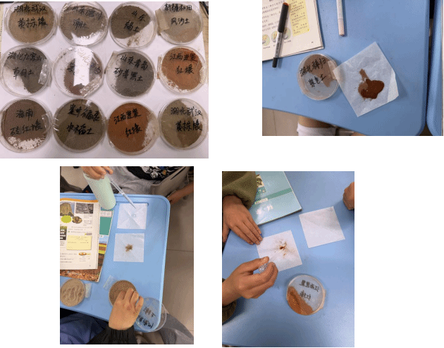 随后,她围绕来自不同地区的各类土壤展开讲解,结合地球科学相关知识,清晰说明土壤差异的形成原因,还带领同学们开展实验——在不同土壤上滴水,观察土壤的吸水变化,直观感受不同土壤的特性,帮助同学们建立起对土壤的科学认知。