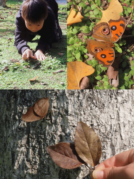 在满是秋天味道的草坪上玩,真的太舒服了!我和妈妈虽然玩的满头大汗,但是我们也有很多收获!我们认识了一个新朋友:它的名字不是枯叶蝶,而是美眼蛱蝶。