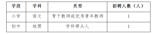 根据学校发展需要,现面向社会公开招聘中小学教师2人。