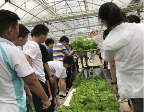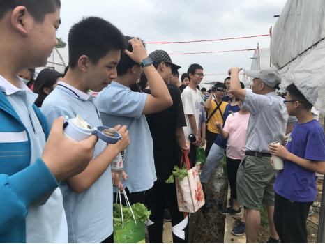 首先,同学们参观了水培温室,了解生菜的多种类型,学习了水培种植的优缺点。